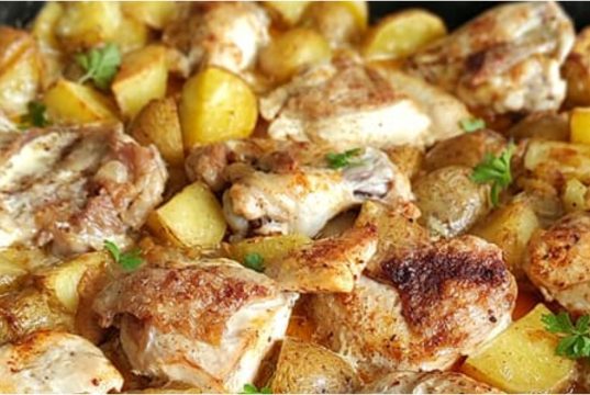 Kuře z jednoho pekáče s bramborami a dijonským přelivem: Elegantní večeře bez námahy