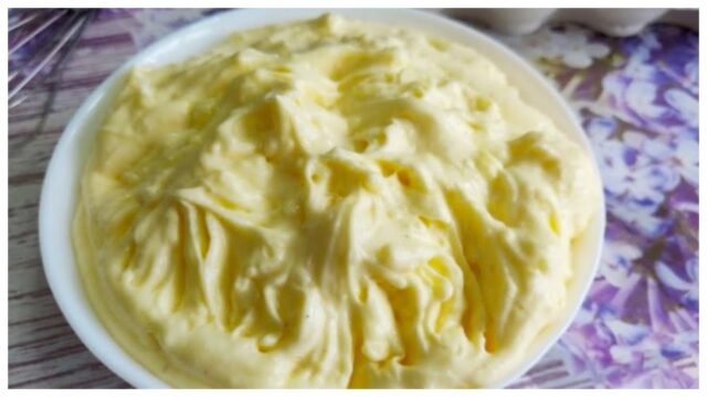 4) Dokončení krému: Máslo vyšlehejte do pěny v míse. Když je máslo dokonale našlehané, postupně do něj přidávejte vychlazený pudink. Míchejte tak dlouho, dokud nezískáte hladký a jednolitý krém. Nechte krém ještě chvíli odpočinout, aby získal konečnou konzistenci.