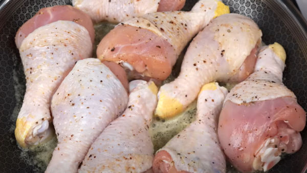 1) Kuřecí stehna si prvně ochutíme solí a pepřem.