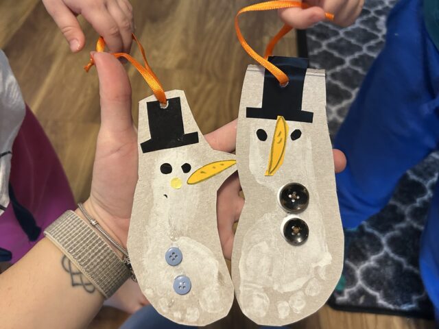 Sněhuláka vystřihněte a nechte všechny části důkladně zaschnout. Ujistěte se, že lepidlo a barva jsou zcela suché, aby nedošlo k poničení ozdoby při zavěšení.