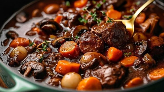 Francouzská kuchyně nabízí mnoho pokladů a jedním z nich je právě Boeuf Bourguignon – hovězí pomalu dušené na červeném víně. Kombinace šťavnatého masa, voňavé zeleniny, hub a bylinek vytváří omáčku s neuvěřitelnou hloubkou chuti. Podávané s jemnou bramborovou kaší představuje toto jídlo dokonalý pokrm na rodinný oběd i slavnostní příležitosti.