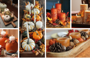 - Dekorace jako umělé listy, žaludy, šišky, malé dýně