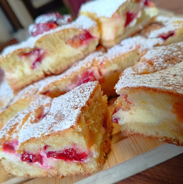 - Dá se péct i ve větším plechu? Ano, jen použijte o něco více ovoce a počítejte s kratší dobou pečení (cca 35 minut).