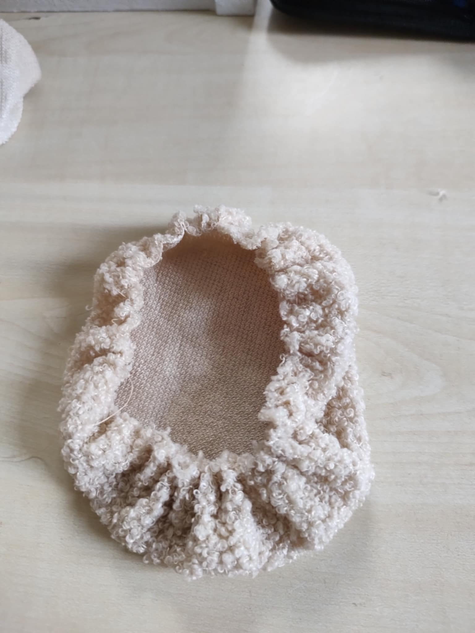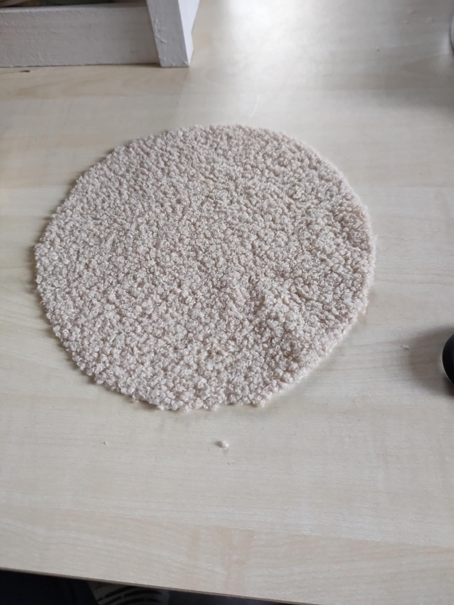 - U hebké látky je na fotografiích vidět, že stopka je vytvořena ze silnějšího jutového provázku, který je zatočený do spirály a přilepený tavnou pistolí.