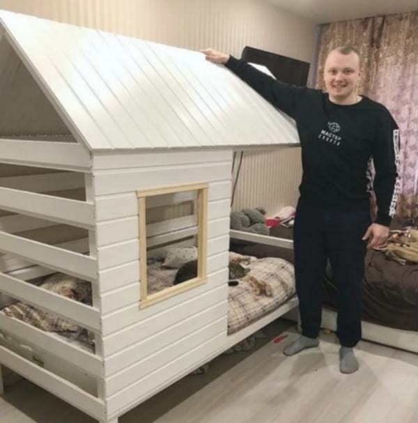 Každé dítě si zaslouží svůj malý svět, ve kterém může snít, hrát si a cítit se v bezpečí. Jeden šikovný otec se rozhodl, že svému synovi takové místo vytvoří – vlastními rukama. Výsledkem jeho práce je originální dětská postýlka, která připomíná malý dřevěný domeček.