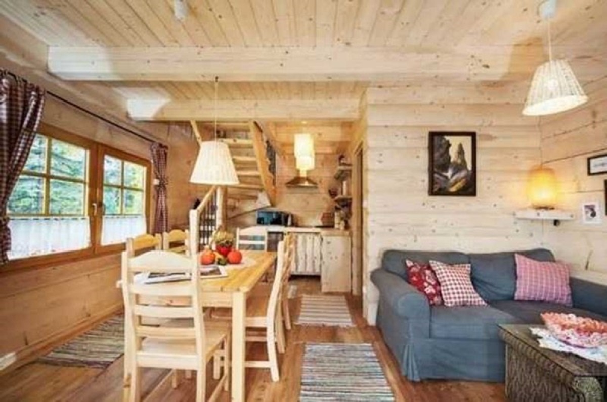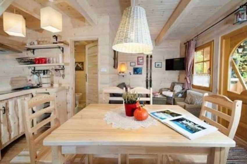 Majitelé se rozhodli pro minimalistický přístup – méně věcí, více volnosti. Díky tomu působí srub vzdušně a uvolněně. Každý kousek nábytku má své místo, každý detail svůj smysl. A i když má dům pouhých 27 metrů čtverečních, nenajdete tu nic, co by chybělo.