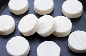 1) Příprava hmoty: Do misky si nasypeme prací práško a smícháme ho se zubní pastou, nejlépe mátovou. Následně do směsi přidáme prostředek na mytí nádobí a dobře vše promícháme. Měli byste získat homogenní plastickou hmotu. Pokud je hmota příliš řídká, přidejte ještě trochu pracího prášku. Pokud je příliš suchá, přidejte trochu pasty nebo saponátu. Pro větší aroma můžete přidat také pár kapek esenciálního oleje.