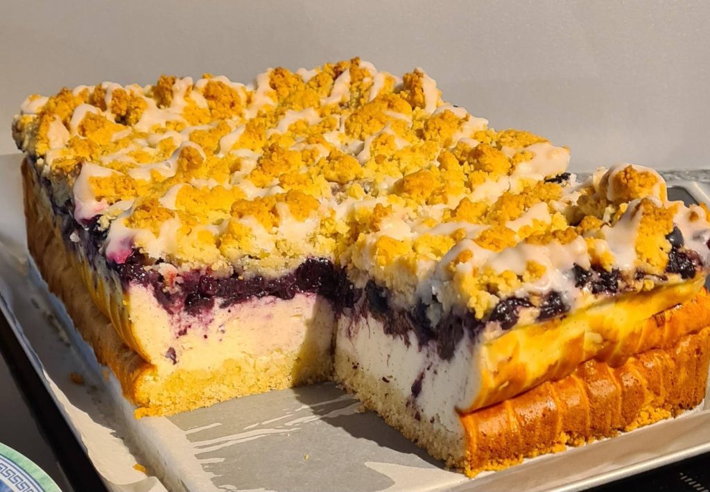 Tato tvarohová buchta s borůvkami je nadýchaná, vláčná a dokonale voňavá. Kombinace máslového drobenkového těsta, jemného tvarohovo-mascarponového krému a šťavnatých borůvek vytváří dezert, který se rozplývá na jazyku. Ideální ke kávě, jako víkendový moučník nebo letní pochoutka. Díky citronové polevě má osvěžující chuť a krásný lesklý vzhled.