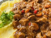- Vepřové maso na šťávě s mrkví a bramborovou kaší