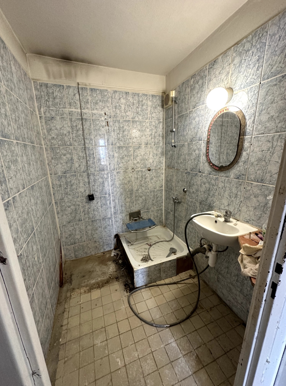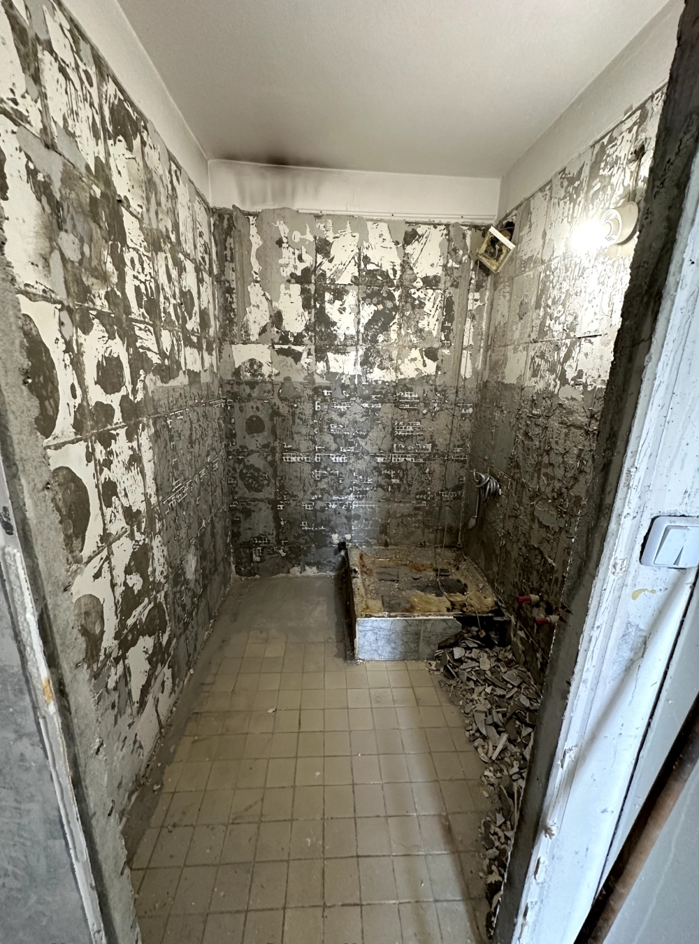 Původní koupelna a toaleta odpovídaly době výstavby panelových domů – umakartové jádro, staré kachličky, malý sprchový kout a oddělené WC. Prostor působil stísněně, tmavě a hygienické standardy dávno neodpovídaly současným požadavkům.