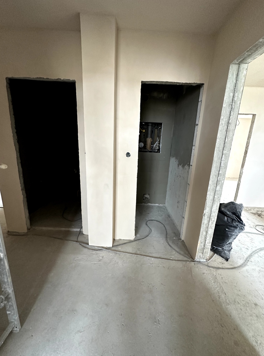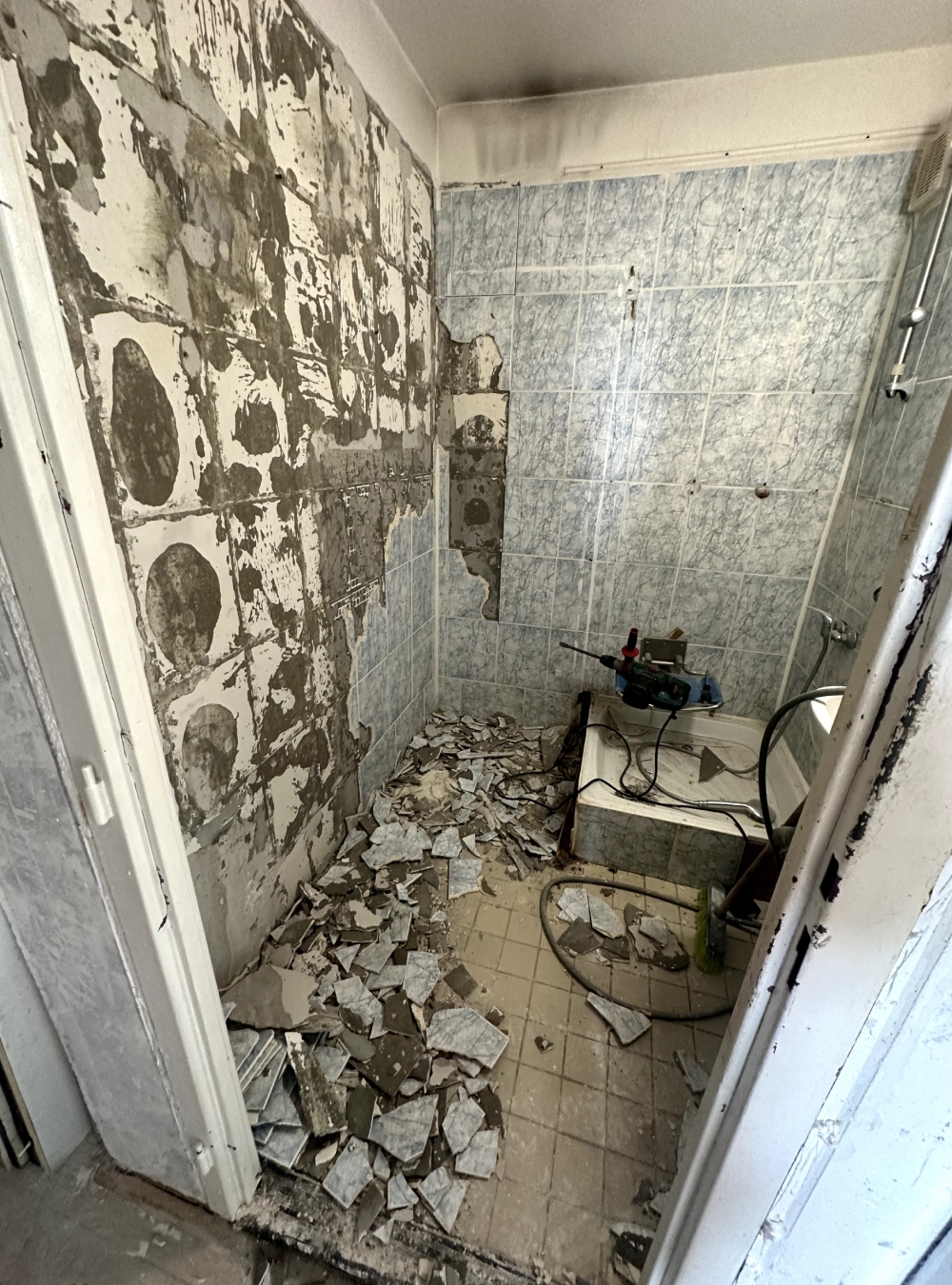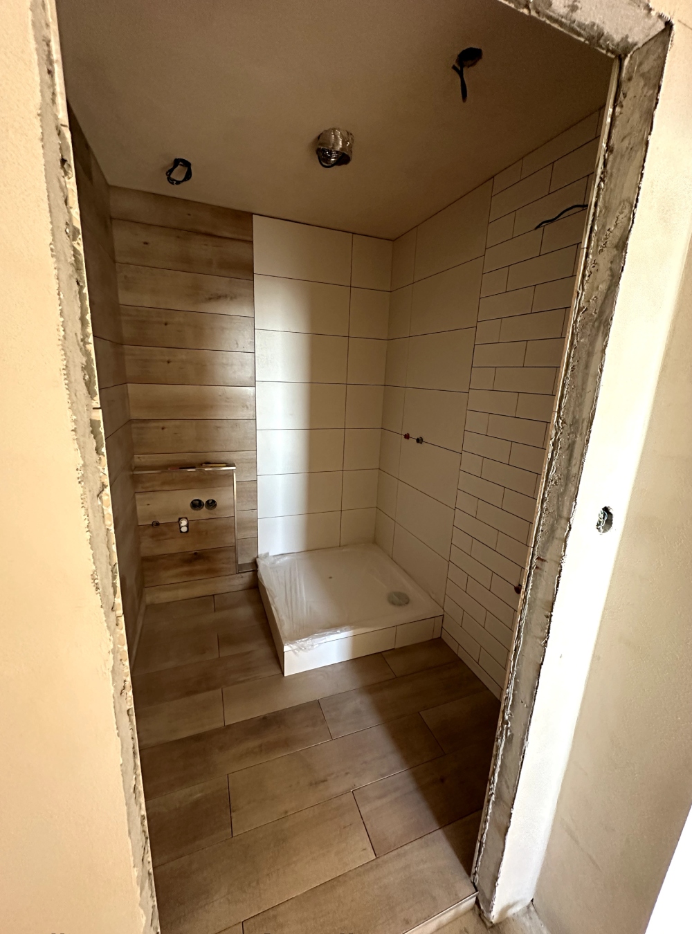 Celá proměna začala bouráním starého jádra. Odstraněny byly nejen původní obklady a sanita, ale i staré vedení vody a odpadů. To umožnilo vybudovat nové rozvody a navrhnout koupelnu i toaletu zcela od základu. Už v této fázi bylo jasné, že výsledkem nebude jen kosmetická změna, ale kompletní modernizace.