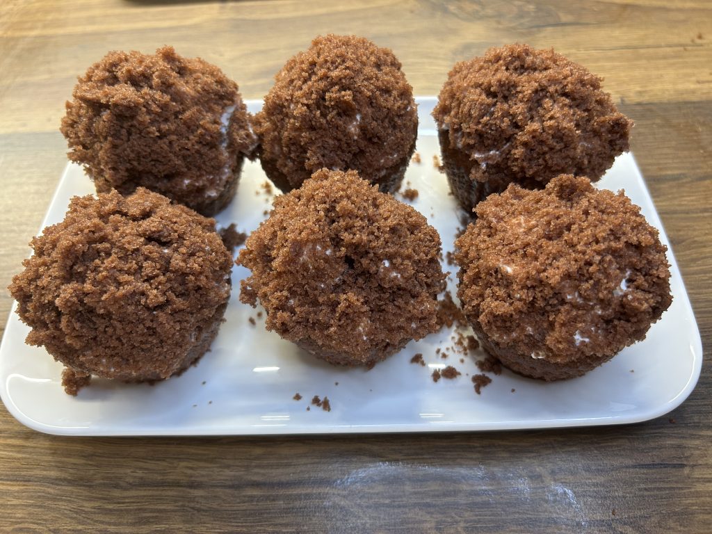 Krtkovy muffiny jsou menší a hravější verzí známého krtkova dortu. Kombinují vláčné kakaové těsto, sladký banán uvnitř a nadýchanou šlehačku navrchu. Díky tomu jsou svěží, jemné a efektní – ideální na dětské oslavy, rodinné setkání nebo jen jako rychlý víkendový dezert. Příprava je jednoduchá, ale výsledek působí slavnostně. Stejně jako u klasického krtkova dortu i tady využijete vydlabané těsto na drobenku, která vytvoří ikonický „krtinec“.