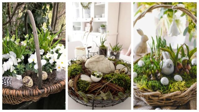 - Hnízdečka: Vytvořte malá hnízdečka z proutí a umístěte do nich barevná vajíčka nebo peří. Tyto dekorace jsou ideální pro velikonoční stůl nebo jako jarní ozdoba na okno.