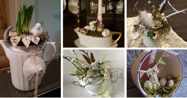 S příchodem jara jsou na cestě k nám také Velikonoce. Pokud stále hledáte nějakou inspiraci na velikonoční dekoraci, pak bychom pro vás možná měli jeden originální tip. Napadlo by vás k vytvoření hezké dekorace využít staré nádobí, jako například hrnečky či starožitné konvičky? Pokud ne, je tento článek přesně pro vás! Jak jsme již zmínili, tak tvorbě využijeme starožitné nádobí. Pokud jste jej tedy například nalezli na své půdě, rozhodně ho nevyhazujte. Sami budete překvapeni, co vše se s těmito kousky dá udělat. Využít můžeme také další typicky velikonoční věci, jako jsou napodobeniny vajec. Dále to mohou být umělohmotní zajíčkové či kuřátka.