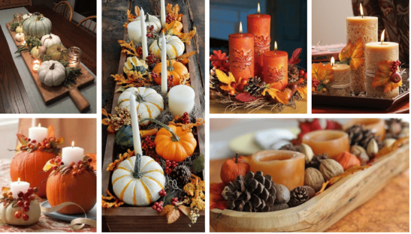 Hezké nápady, ale některé dekorace vypadají v galerii mnohem snáz než pak doma. I tak se ale nechám inspirovat aspoň těmi jednoduššími kombinacemi listí a svíček.