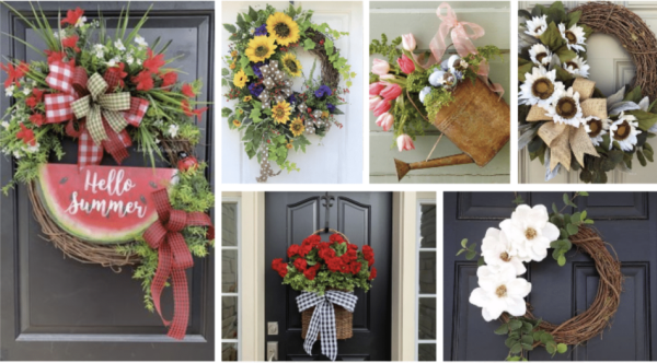 Tyhle letní dekorace na vchodové dveře se mi moc líbí, hlavně ty slaměné klobouky vypadají fakt roztomile. Letos jsem si na dveře dala věneček a sousedé už si všimli, že to dělá domovu úplně jinou atmosféru.