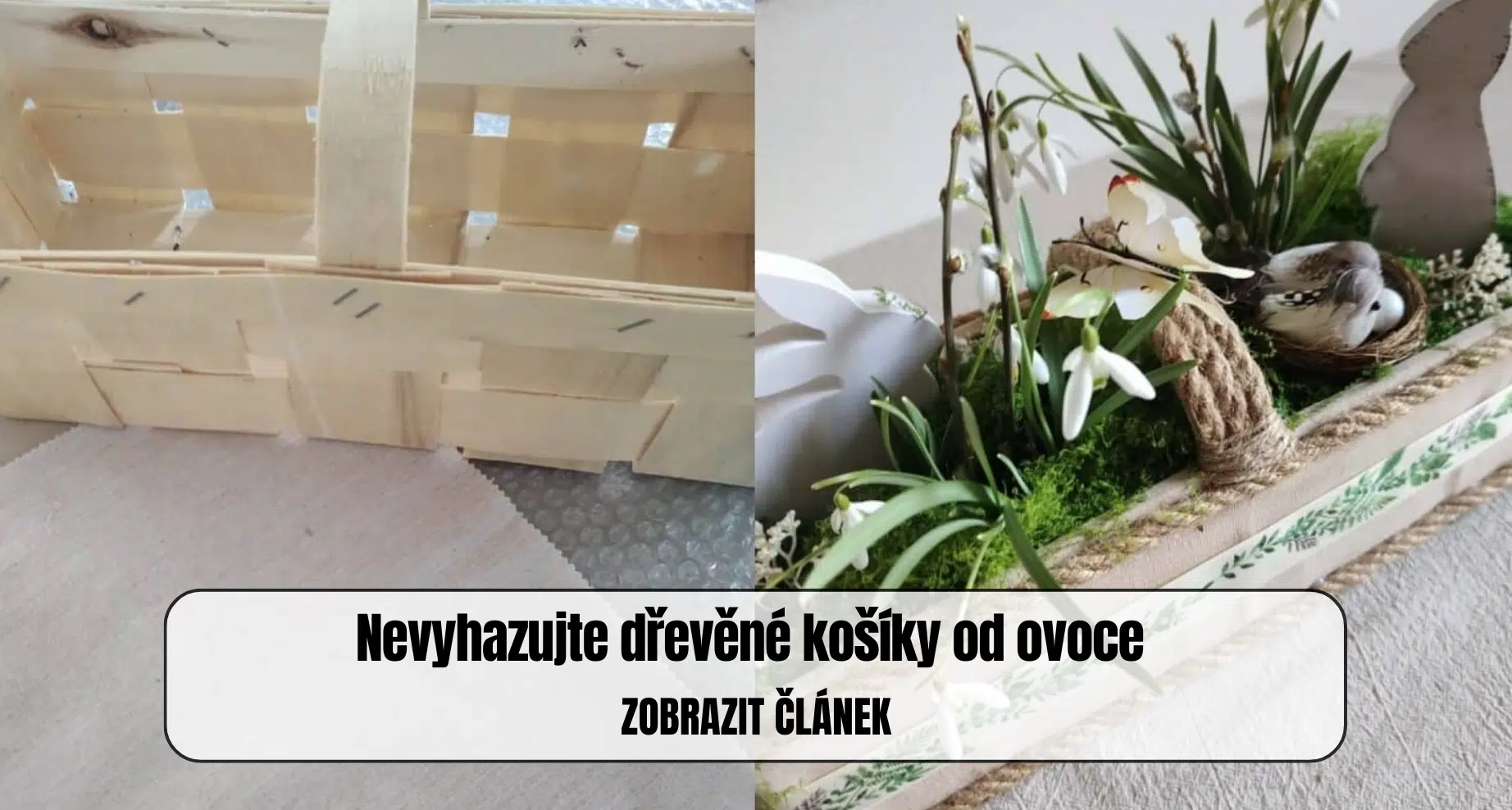 - Dekorační prvky – umělé květiny, dřevěné výřezy, mašle, figurky zajíčků nebo ptáčků