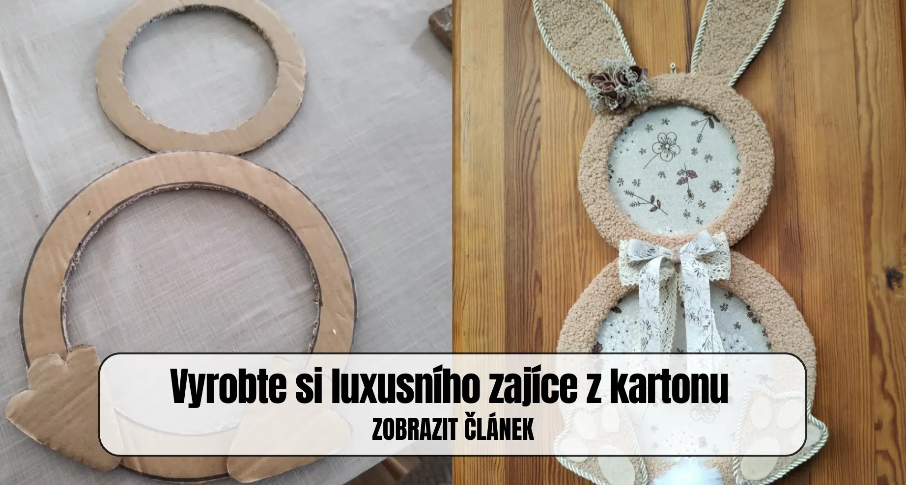 Aby věnec působil esteticky a přirozeně, potáhněte kartonovou konstrukci látkou nebo jutou. Pomocí lepidla nebo tavné pistole ji pevně přichyťte po celém obvodu věnce. Podobně můžete potáhnout i jednotlivé dekorační prvky, například zajíce nebo ptačí budku, aby získaly jemnější a příjemnější vzhled.