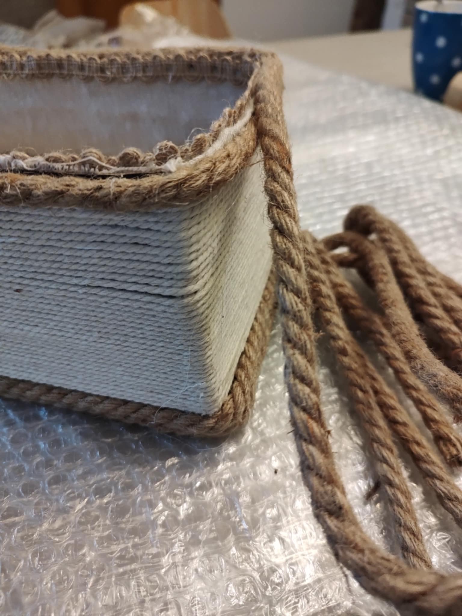 Za mě dobrý návod, hlavně ta část s vyztužením okrajů jutou dává krabici tvar. Jen bych volila trochu pevnější krabici, ať se dózy při manipulaci tolik nehýbou.