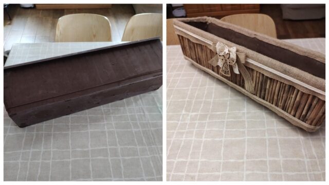 V článku je to popsané jednoduše, takže to snad zvládne i někdo jako já, kdo moc tvořit neumí. U mě se ale trochu zaseklo doladění okrajů—provázek pak ale truhlíku fakt dodá ten finální vzhled.