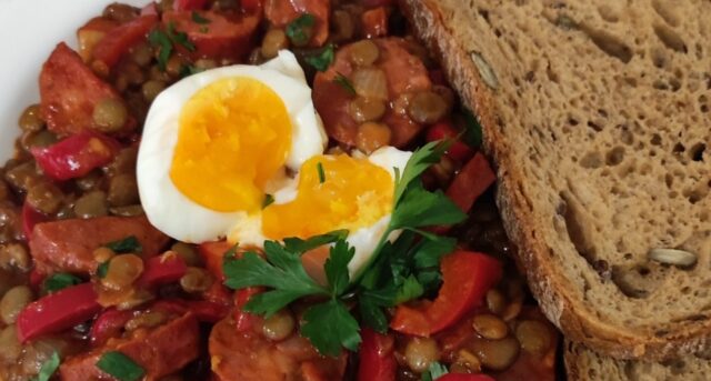 Zapomeňte na klasickou čočku nakyselo, jak ji znáte ze školních jídelen. Tento recept inspirovaný argentinskými chutěmi sází na kombinaci luštěnin, sladké červené papriky a výrazné uzeniny. Je to ideální jídlo „z jednoho hrnce“, které je hotové dřív, než se nadějete. Díky česneku, cibuli a rajčatovému základu získá čočka úžasnou hloubku chuti, která skvěle ladí s volským okem a krajícem čerstvého chleba. Pokud hledáte způsob, jak do rodinného jídelníčku propašovat více luštěnin v lákavé formě, tento recept je trefou do černého.