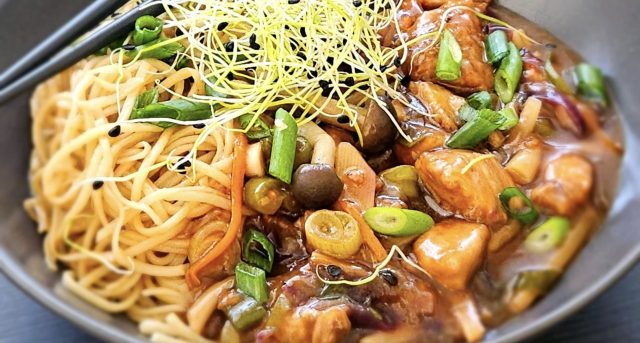 Kuřecí směs s bambusovými výhonky je skvělý způsob, jak si doma připravit chuťově bohaté asijské jídlo bez složitých surovin. Je rychlá, voňavá, plná kontrastních chutí a díky omáčce krásně šťavnatá. V kombinaci s nudlemi tvoří dokonalý pokrm, ke kterému se budete rádi vracet.