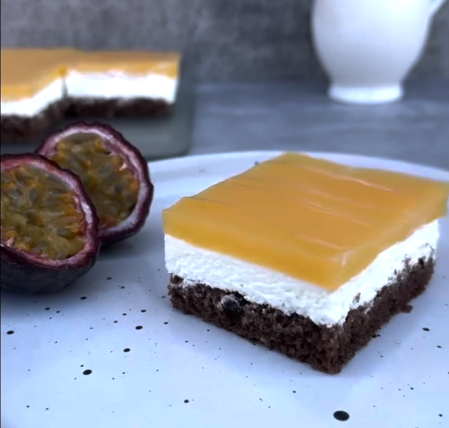 Tento koláč je skvělým spojením vláčného kakaového těsta, jemného tvarohového krému a osvěžující exotické vrstvy. Je ideální volbou na letní oslavy nebo jako sladká tečka po dobrém obědě.