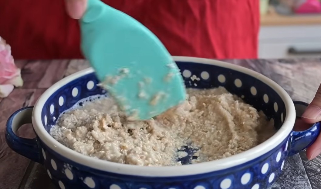 1) Ovesné vločky rozmixujeme a poté smícháme s vroucí vodou.