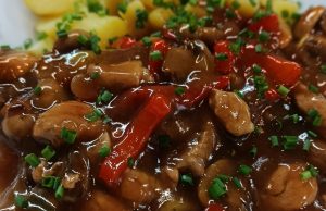 - Vepřové maso na nudličky se žampiony a brambory – rychlý a chutný oběd
