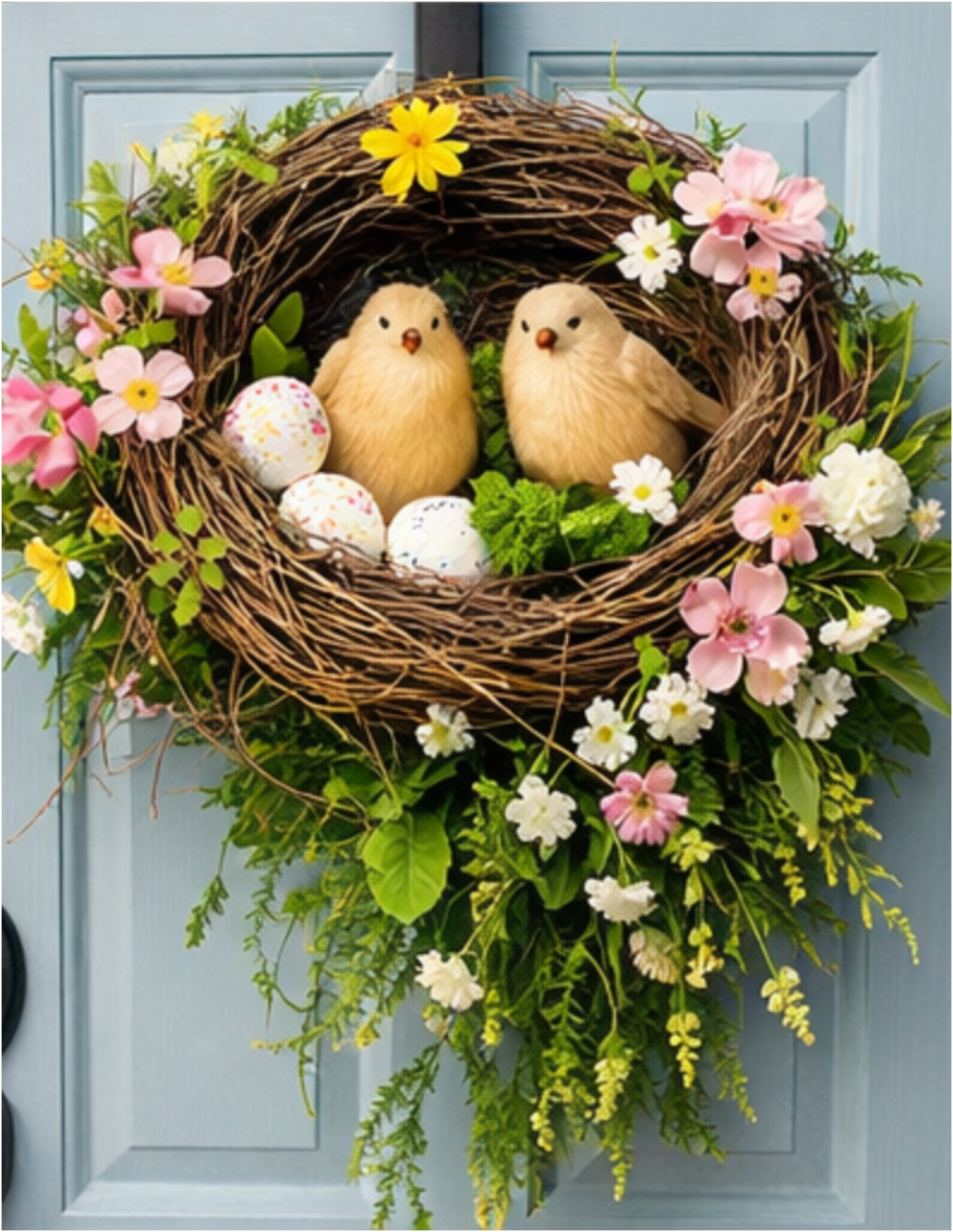 Pokud hledáte něco víc než jen květiny, vsaďte na styl „ptačího hnízda“. Tento trend využívá základ z neopracovaného proutí, do kterého jsou zakomponovány figurky ptáčků nebo drobná křepelčí vajíčka.