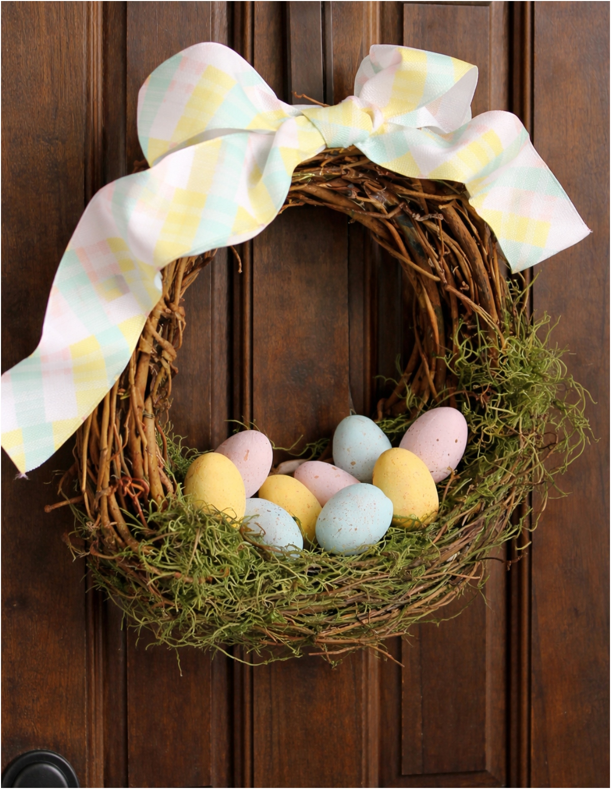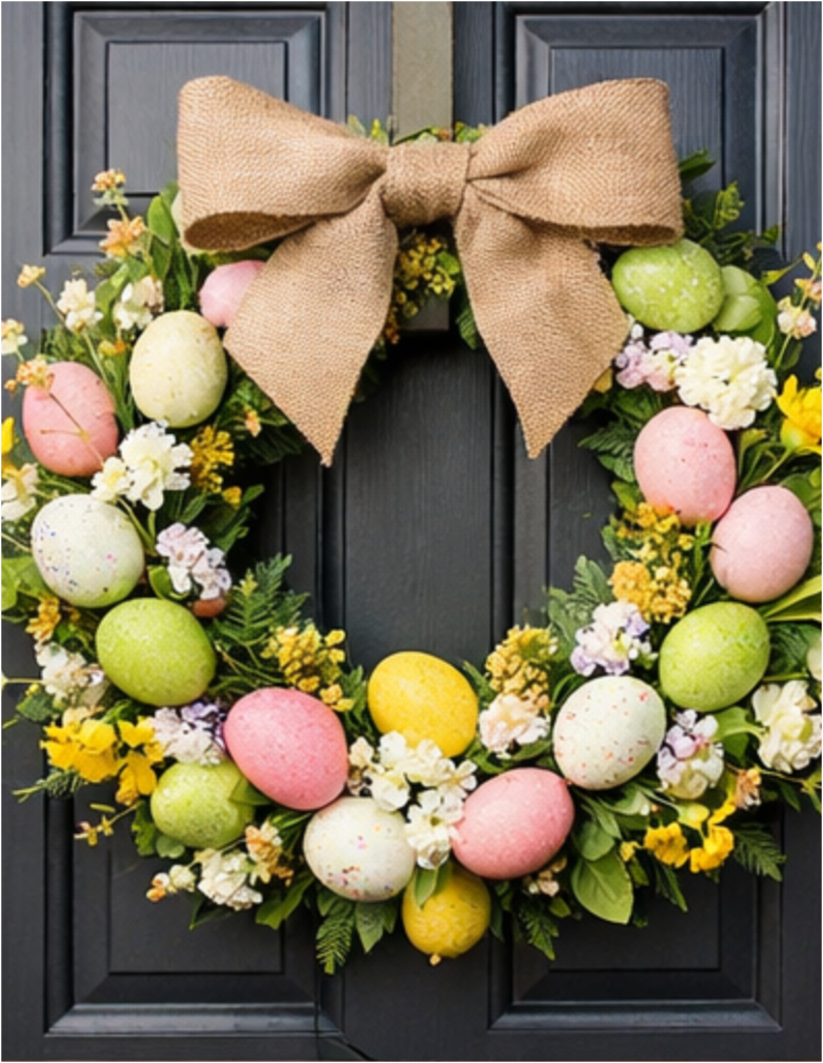 Méně je někdy více. Pokud dáváte přednost modernímu bydlení, zkuste věnec, kde hlavní roli nehrají květy, ale bohatá vrstva vajíček v různých velikostech.