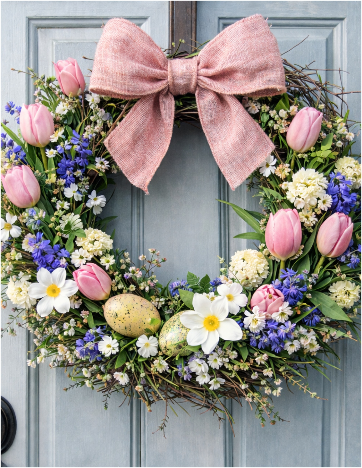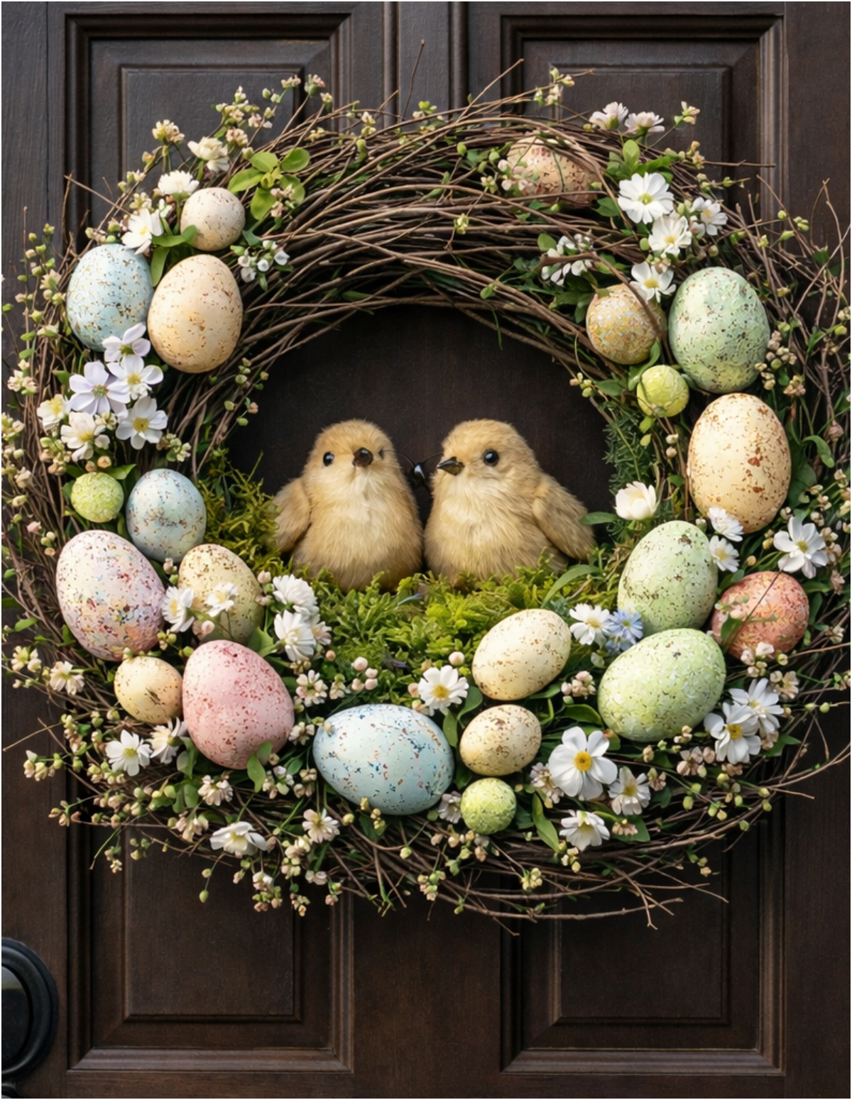 - Chraňte ho před přímým deštěm: I umělé květy mohou na přímém slunci a dešti blednout. Pokud nemáte stříšku, volte materiály jako proutí, plast nebo lakovaná vajíčka.
