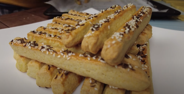 Tyhle sýrové tyčinky dělám podobně, jen dávám trochu víc sýra a jsou pak ještě křupavější. Na večer k filmu zmizí během chvilky.