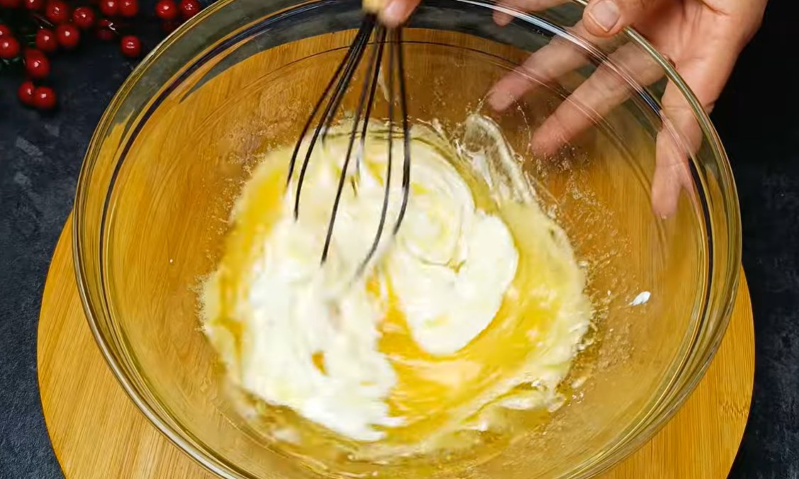 2) Přidáme olej, vanilku a jogurt. Vymícháme.