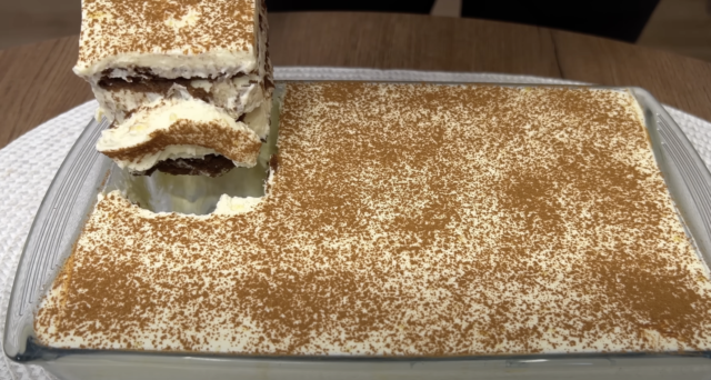 Recept je dobře popsaný, ale já bych doporučil pro jistotu dort nechat v lednici aspoň pár hodin, ať to krásně sjednotí. Takhle to bývá nejvíc „krémové“ a sušenky drží texturu.