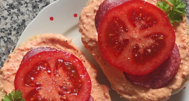 Pomazánky jsou základem každé dobré svačiny nebo pohoštění pro návštěvy. Tato paprikovo-česneková varianta vyniká svou zářivou barvou a vyváženou chutí. Zatímco rozmixovaná kapie dodává přirozenou sladkost, česnek se postará o ten správný říz. Základ z tvarohu a žervé je lehký a výživný, takže si tuto pochoutku můžete dopřát bez výčitek. Je hotová za pár minut a nejlépe chutná na plátku křupavého chleba nebo jako náplň do čerstvých bagetek.
