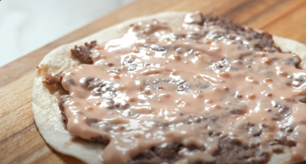 Na každý plát lavaše či tortilly rovnoměrně rozetřete tenkou vrstvu masové směsi.