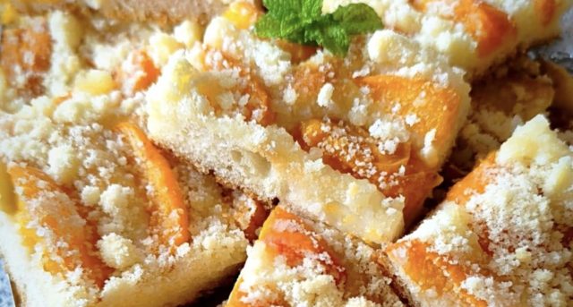 Připravte si nadýchaný kynutý koláč s bohatou drobenkou a šťavnatými meruňkami – opravdovou lahůdku, která provoní celou kuchyni a potěší každého milovníka sladkého pečiva! Tento koláč je překvapivě jednoduchý na přípravu a výsledek stojí za to. Ideální pro letní posezení s kávou, jako dezert nebo sladká snídaně.
