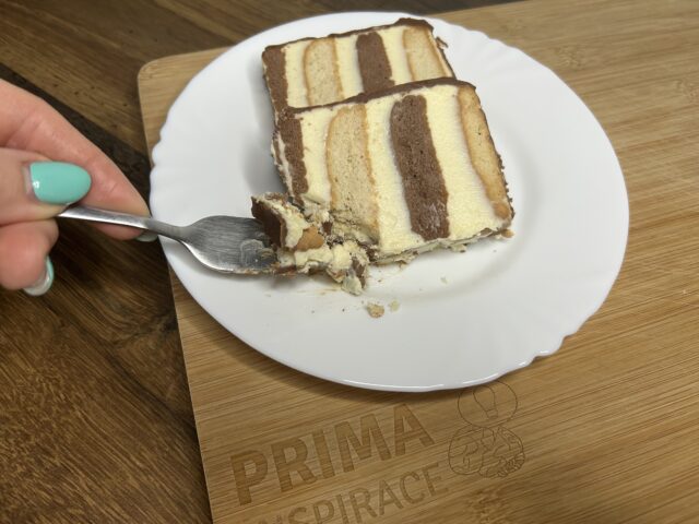 Krájení šikmo je přesně to, co pak vypadá pěkně na talíři — vrstvy opravdu vyniknou. Přikláním se i k názoru, že druhý den je nejlepší, první ochutnávka je spíš „testovací“ než plná porce.