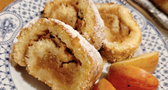 Tahle roláda je jednoduchá na suroviny i postup. Vrstva strouhaných jablek se skořicí a vanilkou během pečení zvláční těsto, takže roláda se krásně stáčí a nepraská. Chuťově připomíná štrúdl, ale práce je minimum.