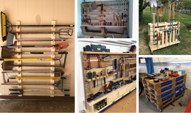 Dřevěná paleta nám může posloužit také jako skvělá úschovna pro vaše nářadí..