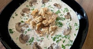 Žampionový krém s krutony: Jemná polévka plná chuti