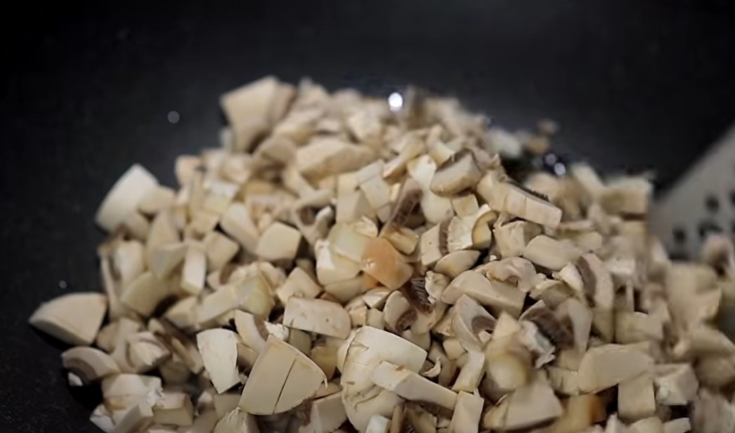 4) Přidáme naší houbovou směs.