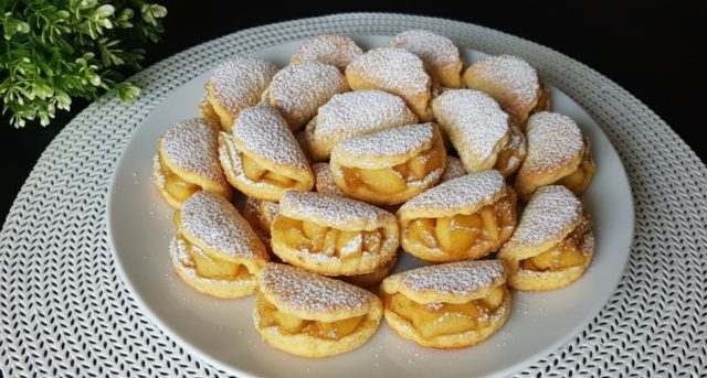 Včera jsem to zkoušela a pusinky jsou opravdu křehké a krásně zlatavé. Jablková směs byla po těch 7 minutách akorát, jen příště dám drobnější kostičky, aby se lépe rozložily.