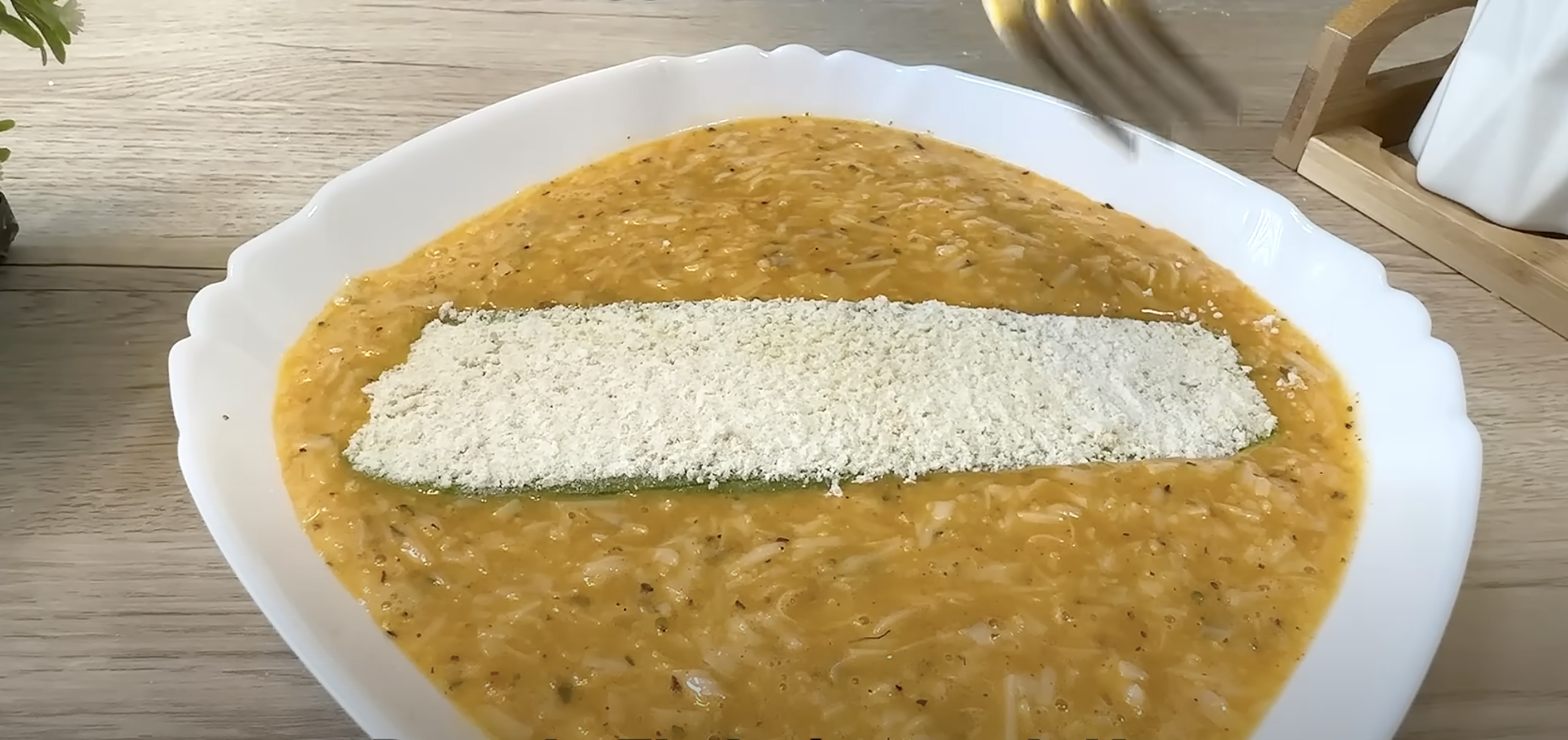 2) Obalování: Každý plátek cukety nejprve obalte v mouce, poté v sýrové vaječné směsi a nakonec ve strouhance. Ujistěte se, že je každý kousek dobře obalený.
