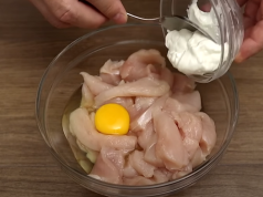1. Vepřovou kýtu nakrájejte na nudličky a osolte je podle chuti. Přidejte koření na čínu a hojně zalijte sojovou omáčkou, která jim dodá výraznou chuť. Přidejte také žloutek a lžičku solamylu, což pomůže maso zahustit a zároveň zajistí krásnější omáčku. Nechte maso odležet v lednici přes noc, aby dobře nasáklo kořenění.