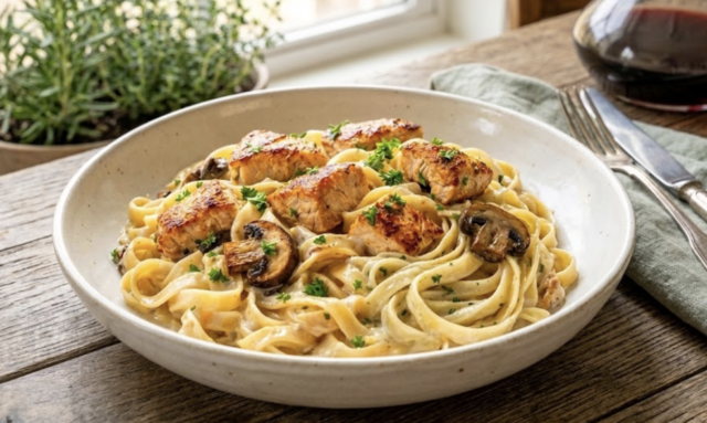 Tento rychlý a jednoduchý recept na kuřecí na smetaně s houbami je ideální volbou, když chcete uvařit něco opravdu chutného bez zbytečného složitého vaření. Jemné kuřecí maso se šťavnatými houbami v krémové smetanové omáčce vytvoří dokonalou kombinaci chutí, která potěší celou rodinu. Skvěle se hodí k rýži, těstovinám nebo knedlíkům – a zvládnete ho připravit i ve všední den.