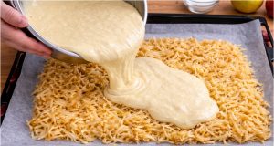 Nastrouhejte na plech 4 jablka a zalijte těstem: Dokonalý víkendový koláč...