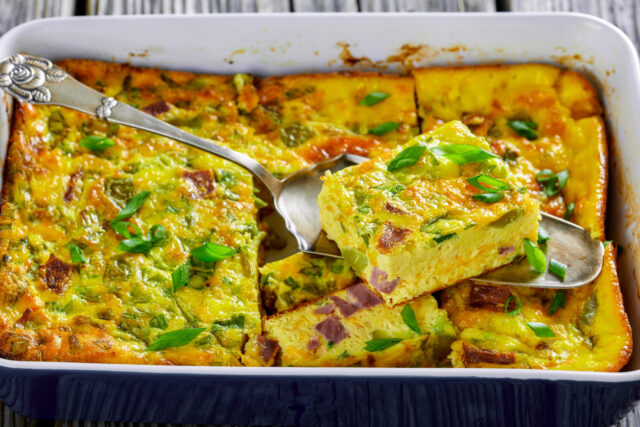 Tip: Pro ještě nadýchanější výsledek lze žloutky rozmíchat do směsi a z bílků se špetkou soli vyšlehat sníh, který vmícháme do směsi těsně před pečením.