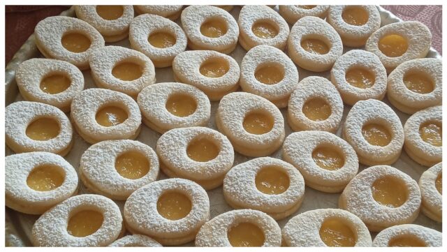 Mně osobně víc chutnají s malinovou marmeládou, ale pomeranč je taky super. Zajímavé je, že recept pracuje s pudinkovým práškem a těsto je potom takové jemnější než klasické linecké.